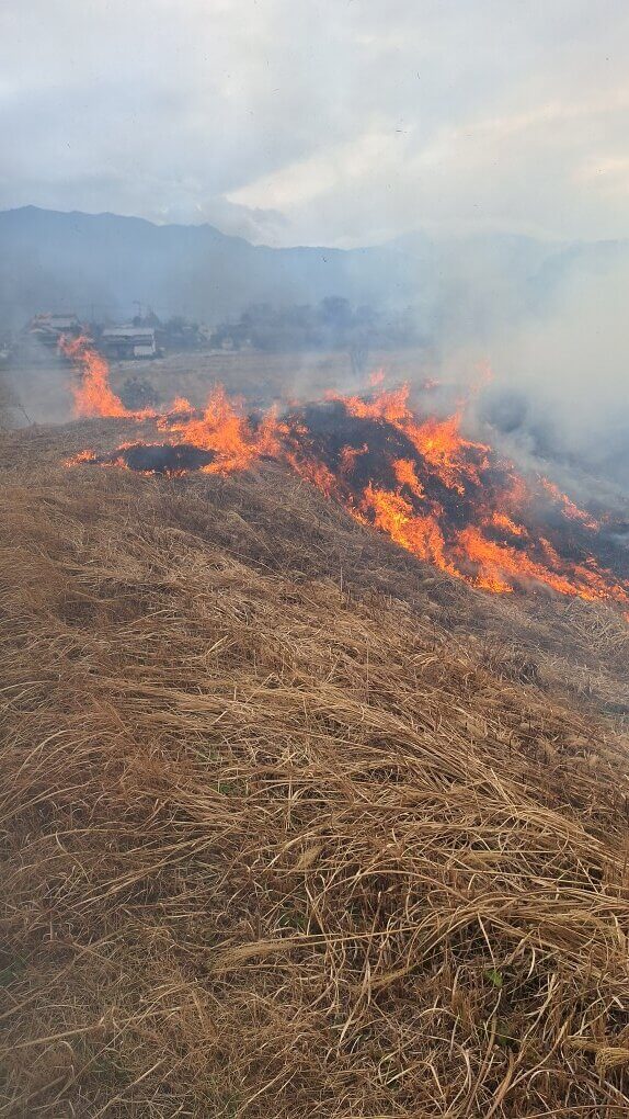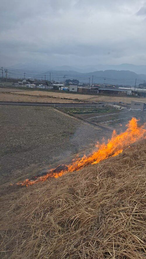 2月のことになりますが池の周りの土手の刈った枯れ草を燃やすので防火作業をしてきました。